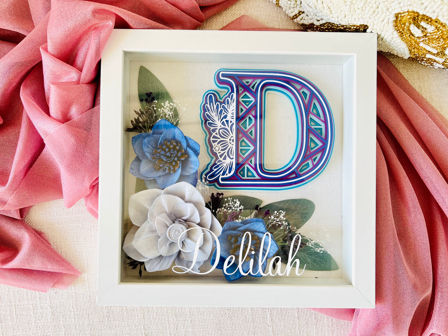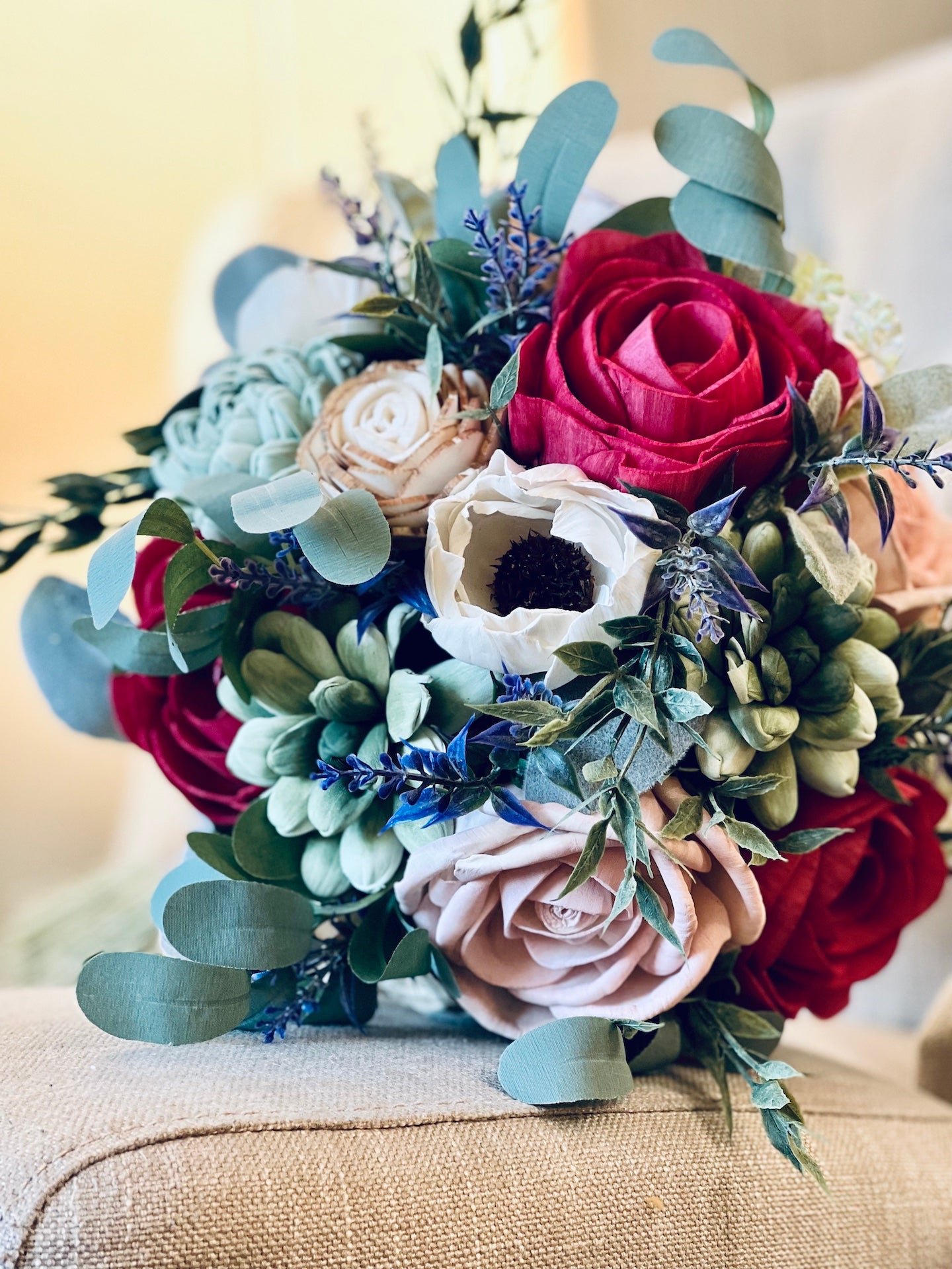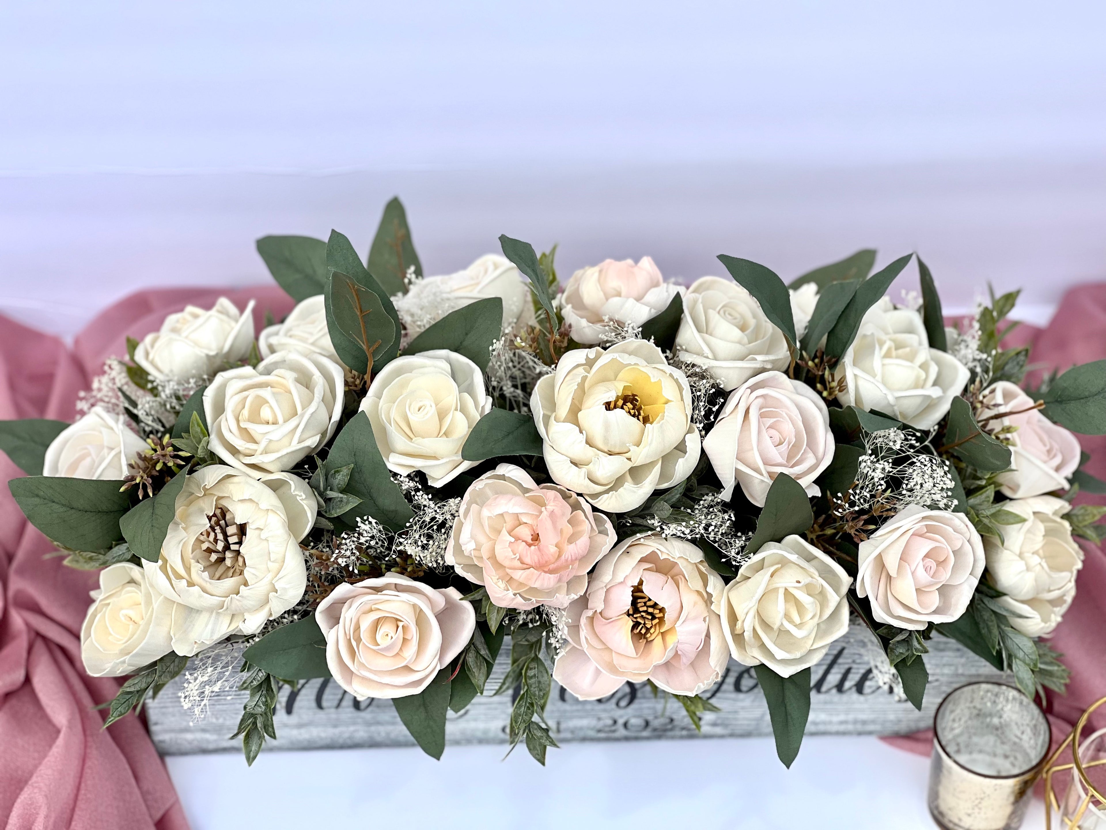 "I had the absolute pleasure of working with Little Miss Delilah for my April 2024 micro-wedding, and I couldn’t be happier with the beautiful floral creations she made for us! Ellie crafted a stunning wooden wedding bouquet, boutonniere, and centerpiece box that perfectly matched the soft, realistic colors I envisioned." - Stephanie & Patrick