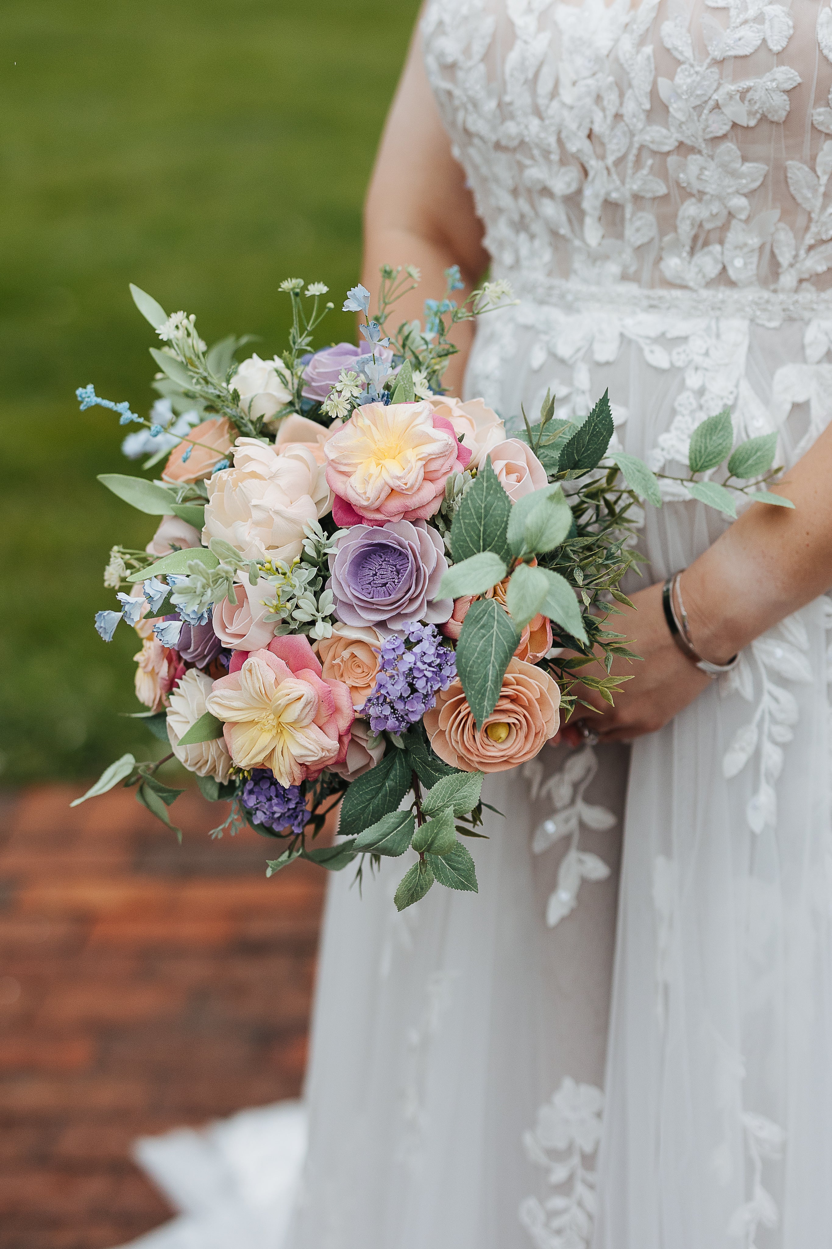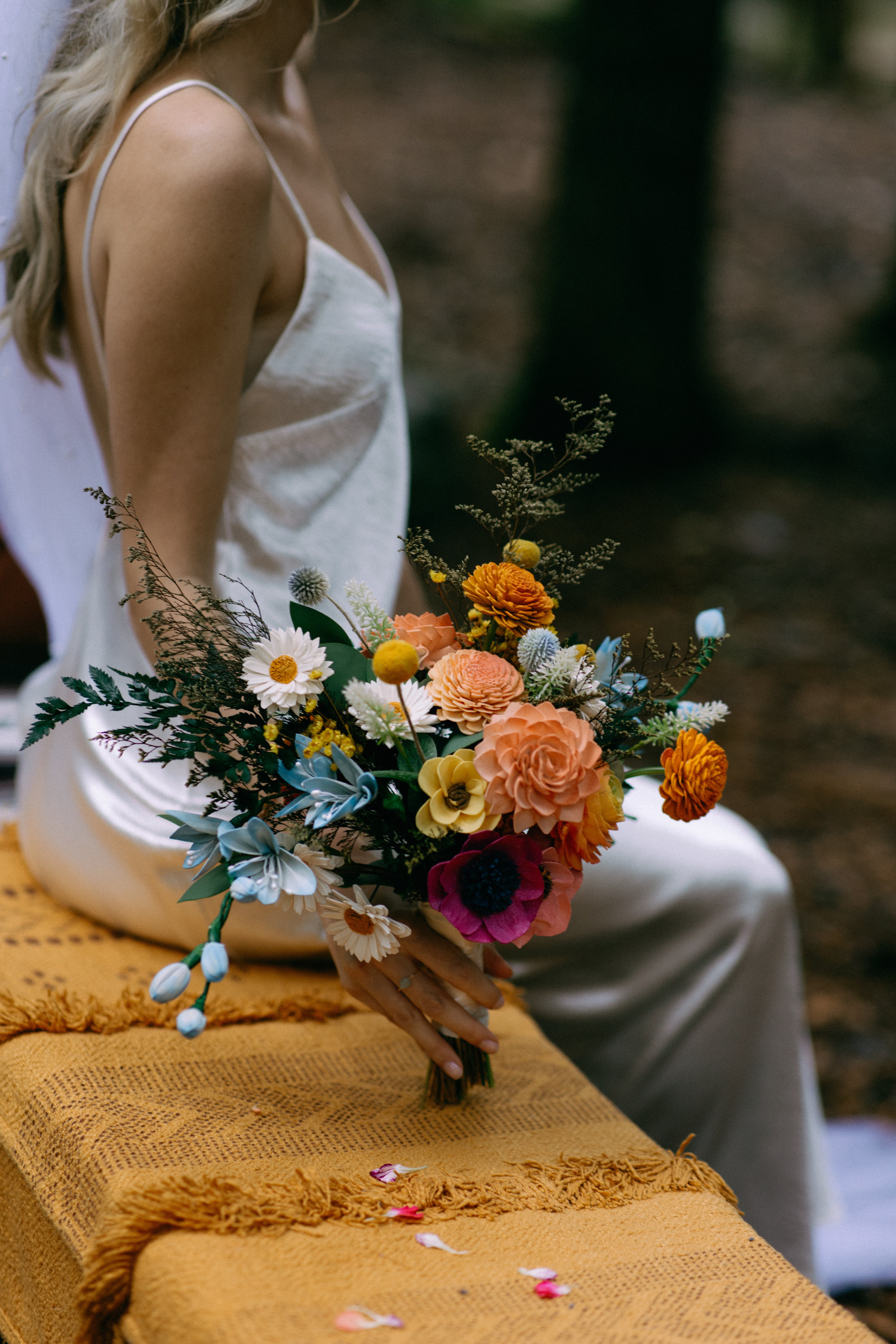 "I had the absolute pleasure of working with Little Miss Delilah for my April 2024 micro-wedding, and I couldn’t be happier with the beautiful floral creations she made for us! Ellie crafted a stunning wooden wedding bouquet, boutonniere, and centerpiece box that perfectly matched the soft, realistic colors I envisioned." - Stephanie & Patrick