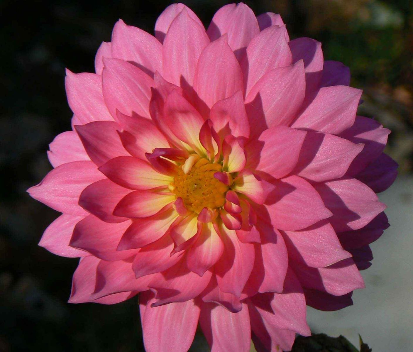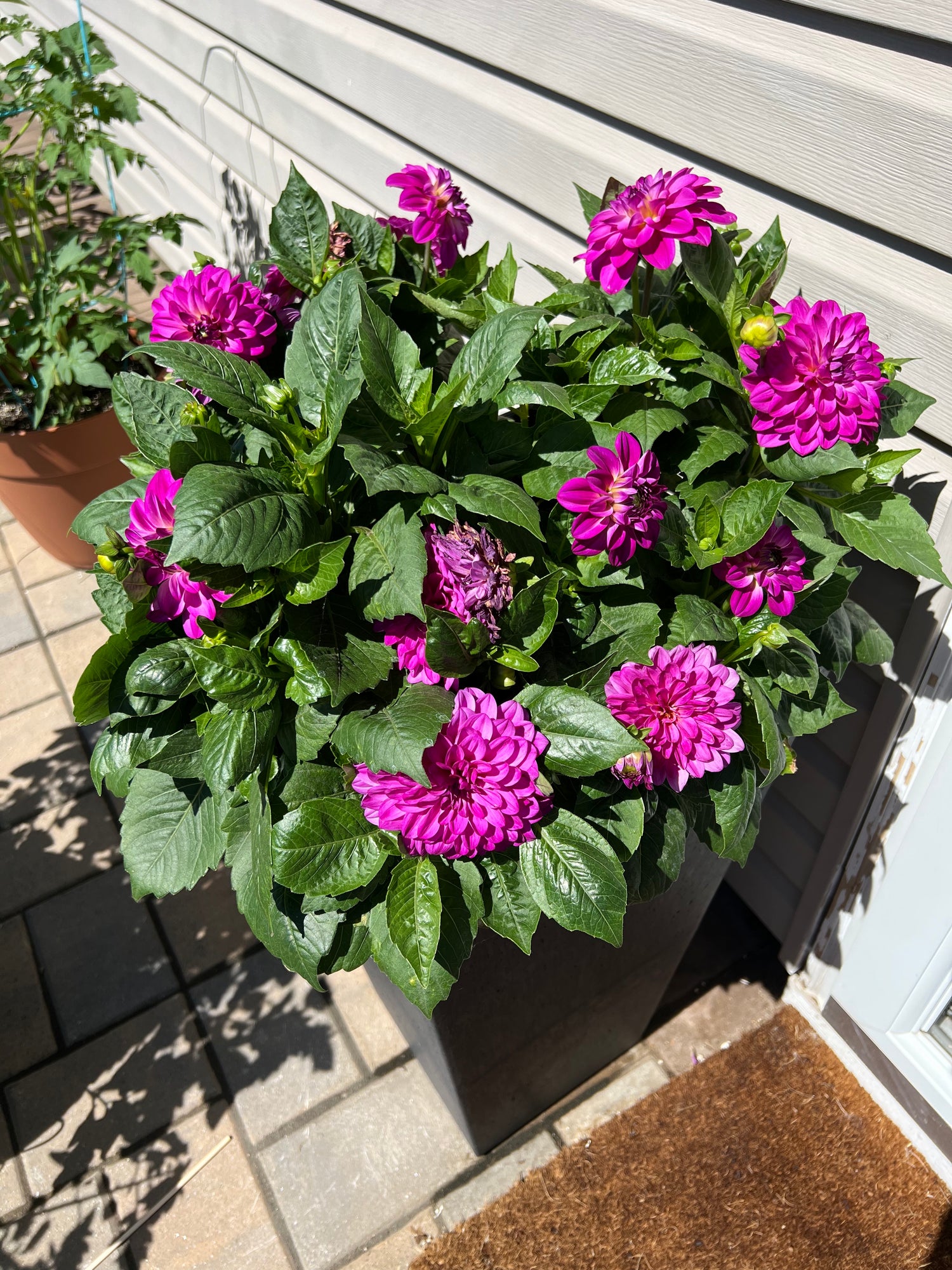 I was particularly fond of the bright purple dahlias I had in a planter on the patio. When researching care and maintenance of dahlias, I stumbled across a particular variety nicknamed “Miss Delilah.” A show-stopping bloom of large pink petals blending to white or yellow near the centers, Miss Delilah stands around four feet tall and produces numerous flowers with long stems.